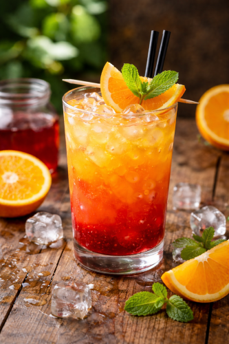Коктейль на основі апельсинового соку,grenadine, erdbeere, лід